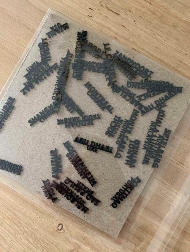 36 verschillende F1 circuits om zelf in een lijst plaatsen of om ergens anders op te lijmen.